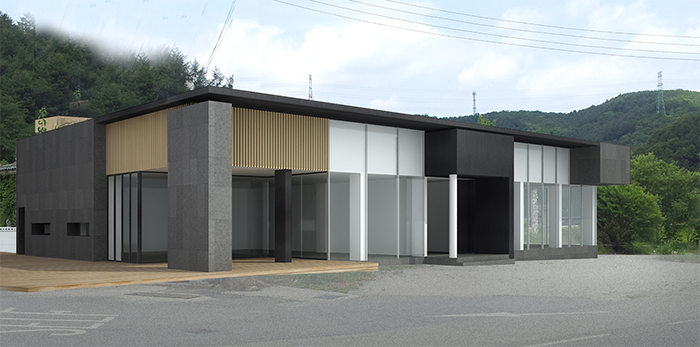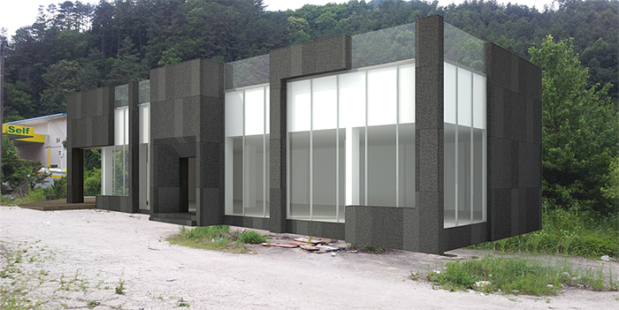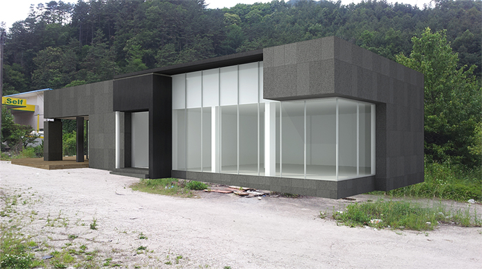 벽체 : 현무암, 우드패널, GLASS